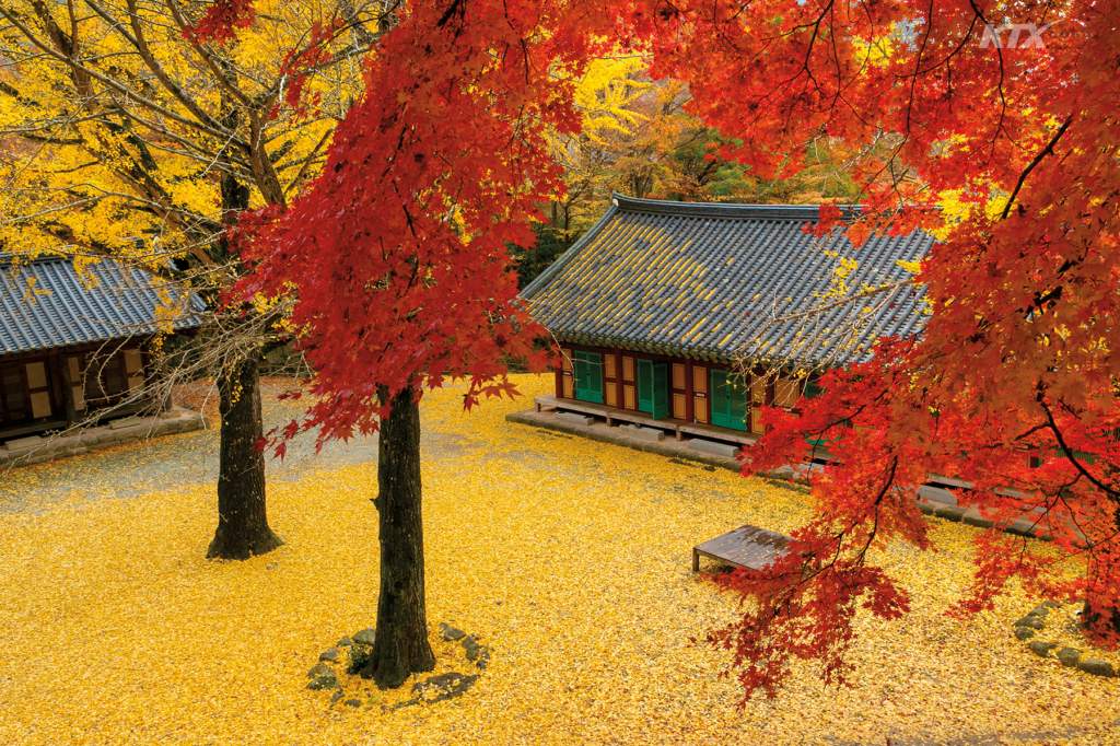 오색 단풍으로 물든 월출산의 품에 안긴 도갑사.