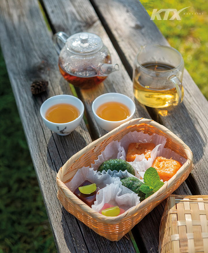 백운동원림을 빠져나오니 이번에는 월출산 아래 너른 차밭이 시선을 빼앗는다. 월출산 남쪽은 예부터 사찰을 중심으로 차나무를 많이 재배하던 곳으로 유명하다. 차에 대한 애정이 남다른 다산은 이곳의 차가 천하에서 두 번째로 좋다고 극찬했다. 월출산 녹차를 제대로 즐기고 싶어 백운차실로 걸음을 옮겼다. 백운차실은 찻집이자 이한영 차 문화원으로, 아늑한 차실과 함께 이한영 생가가 자리한다. 이한영은 다산에게 매년 차를 만들어 보내던 제자 이시헌의 후손이자 한국 최초의 차 브랜드 ‘백운옥판차’를 만든 이다. 다산이 즐겨 마신 떡차와 일제강점기에 한국 차의 정체성을 지킨 백운옥판차를 맛볼 수 있으니 놓치면 아쉬운 강진 명소다. 월출산 풍광이 액자처럼 담기는 창가 자리도 좋지만, 볕이 좋은 날이라면 차와 자연을 함께 즐기는 프로그램 ‘차 소풍’을 추천한다. 피크닉 바구니에 월산차와 다과, 다구, 온수가 담긴 보온병, 돗자리 등이 들어 있어 잔디밭이나 호젓한 숲으로 들고 나가 티타임을 즐기기 좋다.