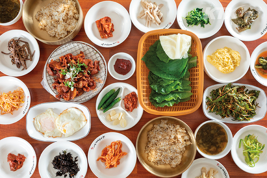 한반도의 마지막 마을, 해남에 다다르자 뜨거운 볕에 무언가 익어 가는 냄새가 코끝을 스친다. 주변을 둘러보니 고즈넉한 사찰의 나무가, 금빛 윤슬을 품은 너른 바다가, 수확을 기다리는 채소가 무르익고 있다. 한국에서 가을이 가장 늦게까지 머문다는 해남에는 어디서나 맛있는 냄새가 난다. 첫 번째로 대흥사 초입에 위치한 해남 웰빙 음식촌에서 해남8미에 포함된 보리쌈밥을 먹기로 했다. 산채 음식을 전문으로 하는 해남 웰빙 음식촌에는 보리쌈밥과 파전, 더덕구이 등 자연에서 난 채소를 사용해 건강한 밥상을 차리는 식당이 모여 있다. 그중 인기 메뉴는 보리쌈밥. 35년 전통의 보리쌈밥 전문점 ‘한오백년’은 원래 대여섯 가지 산나물을 한 그릇에 담아내는 산채비빔밥을 내놨는데, 손님마다 좋아하는 나물이 다른 걸 보고 방식을 바꿨다. 원하는 나물을 골라 담아 직접 비빔밥을 만들어 먹을 수 있도록 한 것. 이렇게 만든 비빔밥을 쌈을 싸서 먹는 것이 보리쌈밥 메뉴다. 탱글탱글한 보리밥의 식감과 향긋한 제철 채소가 어우러져 해남의 가을을 한입에 먹는 기분이다.