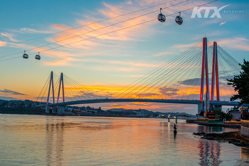 충무공 이순신 장군의 전설적인 명량대첩이 펼쳐진 울돌목은 여전히 거센 물살이 몰아친다. 진도와 해남 사이, 유리병의 목처럼 갑자기 좁아지는 해로가 바로 울돌목이다. 바닷물이 차고 빠지며 하루 네 번 울돌목을 일시에 지나면서 조류가 거세지는 것. 1597년 임진왜란 당시 이순신 장군은 울돌목의 이런 특성을 이용해 불과 13척의 배로 왜군 133척을 막아 냈다. 그 위대한 업적은 울돌목 앞에 조성한 우수영국민관광지에서 살펴볼 수 있다. 명량대첩해전사기념전시관을 비롯해 임진왜란 당시 의병과 관군의 전투 모습을 재현한 조각상 등이 생생한 감동을 전한다. 해 질 무렵, 진도와 해남을 잇는 진도대교 끝에 자리한 스카이워크에 올랐다. 총길이 110미터, 주탑 높이 25미터의 스카이워크는 바닥이 투명한 유리로 되어 있다. 거세게 휘몰아치는 바다가 발아래로 내려다보여 아찔하고도 신비롭다. 조금 더 높이, 조금 더 멀리 바라보고 싶어 케이블카를 타기로 했다. 명량해상케이블카는 약 1킬로미터 구간의 울돌목해협을 가로질러 해남과 진도를 잇는다. 하늘과 바다를 한눈에 담고 싶다면 바닥이 투명한 유리로 된 크리스탈 캐빈을 추천한다. 높이 30미터의 이순신 장군 동상과 총길이 484미터의 진도대교가 시야에서 차츰 멀어지면서 노을 진 울돌목 풍경이 파노라마 뷰로 펼쳐진다. 세상의 모든 붉은색을 모아 놓은 듯한 강렬함이 덮치듯 가슴을 파고든다.