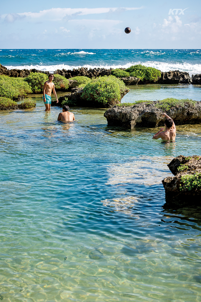 괌 로컬의 삶은 자연에 있다. 온순한 라군과 평화로운 산호초, 우거진 정글, 날카로운 협곡이 일상의 무대다. 섬 남쪽에 자리한 이나라한 자연 풀장은 바다의 너그럽고 따뜻한 품 안에서 유유히 물놀이하고 싶을 때 즐겨 찾는 곳이다. 가두리 모양으로 형성된 약 4~6미터 높이의 용암이 외해의 거친 파도를 막아 주는 천연 수영장으로, 풀 안에 고인 바닷물의 잔잔한 물살에 몸을 맡긴 채 수영과 스노클링을 즐긴다. 인적 드문 남쪽 마을의 해안가답게 집 앞의 바다를 즐기는 로컬이 관광객만큼이나 자주 눈에 띈다. 다이빙대와 농구 코트, 그늘 아래 쉼터가 되어 주는 파빌리온 형태의 정자에서 유유자적한 시간을 보내는 현지인과 어우러져 망중한을 누려 보자. 작은 다리를 지나면 나타나는 전망대에서는 평화로운 자연 풀장과 태평양의 아득한 수평선이 바라다보인다.