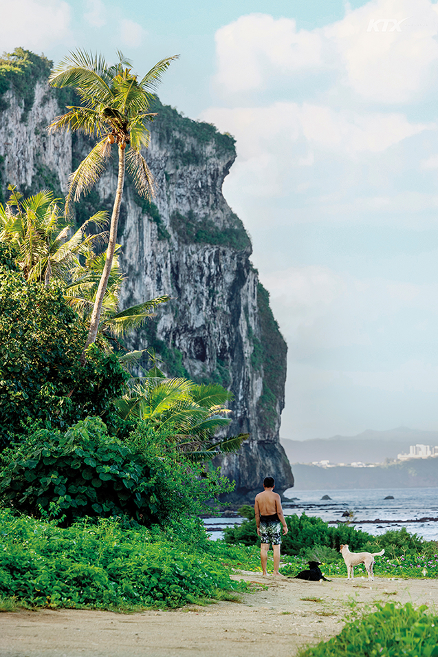 괌의 자연은 실제로도 녹록지 않다. 북부는 가파른 석회암 절벽이 태평양과 마주하는 카르스트지형 고원이, 남부는 화산활동으로 형성된 험준한 산악 지형이 대부분이다. 많은 여행자가 머무는 중부를 벗어나면 이 ‘손 타지 않은 야생의 대자연’ 속에서 조깅, 사이클링, 하이킹, 협곡 트레킹, 트레일 러닝 같은 액티비티를 즐기는 로컬을 심심찮게 만난다. 접근하기 쉬운 거친 자연이 사람들을 바깥으로 끌어내고, 움직이고 운동하게 만든다는 얘기다. 이번 여정에서 나는 그 온순하게 흐르는 괌 중부의 바다에 한 번도 몸을 적시지 못했다. 대신 남과 북을 종횡무진하며 활기찬 삶을 사는 로컬들을 만나고, 그들의 일상을 경험했다.
