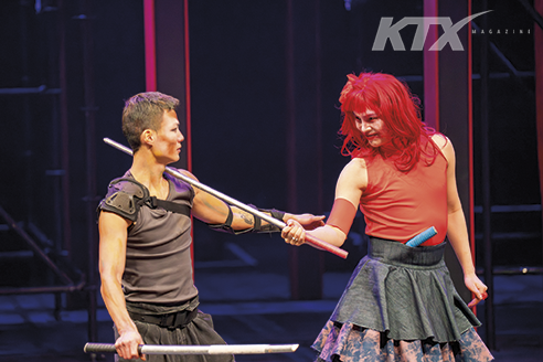완성도 높은 무협 액션극 <칼로막베스>는 극단 마방진의 신구 배우들이 빚어낸 결과물이다. 빠르게 뱉는 대사, 느닷없는 제스처 등 고선웅 대표 특유의 연출법을 체화한 단원들은 자신의 역할을 성실히 수행하면서 강한 에너지를 분출한다. 국립창극단의 대표 소리꾼이었던 김준수는 막베스 부인 역을 맡아 연극에 처음 도전했다. 막베스를 자극하는 강인한 면모와 죄책감에 시달리는 섬세한 감정을 그만의 방식으로 풀어냈다. 공연 중간에 소리꾼의 창법으로 대사를 구사해 색다른 즐거움도 선사한다.