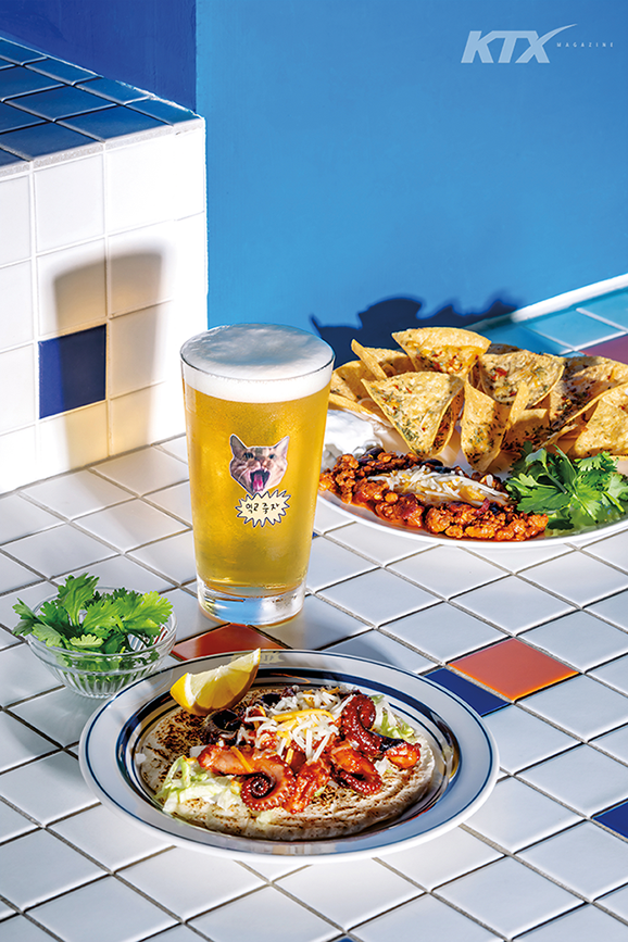 신설동 골목 한구석에 들어선 맥주 펍, 타일러에서는 독특한 조합의 타코 메뉴가 눈에 띈다. 돼지 머릿고기, 불고기, 주꾸미 등 한식 재료를 주재료로 사용하는데, 그중 인기 메뉴는 ‘타일러스 타코’다. 수제 토르티야에 불 향을 입힌 용두동 주꾸미를 더해 낯선 듯 익숙한 맛이 난다. 매일 12종의 국내 수제 맥주를 선별하는 타일러의 시그너처 맥주는 ‘원모어드링크’. 효모를 필터링해 청량함을 극대화했다. 뒤끝 없는 깔끔한 맛에 꿀떡꿀떡 들이켜니 금세 잔이 비고, 이름대로 한 잔 더 주문하게 된다. 저마다 다른 표정의 고양이가 그려진 귀여운 맥주잔도 주문을 멈출 수 없게 한다.