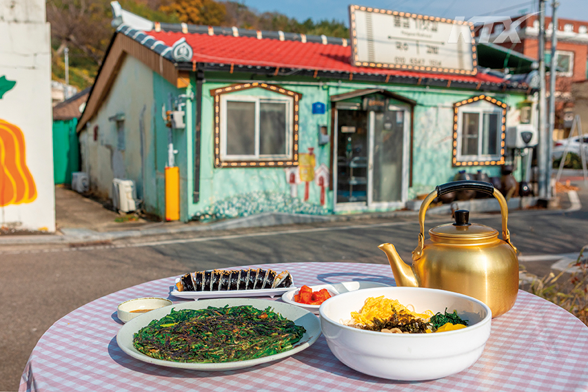 물금역에서 서리단길로 들어서는 입구에 옛 물금역을 닮은 식당 하나가 눈길을 끈다. 이정표처럼 생긴 ‘물금 기찻길’이라는 간판에는 왼쪽 화살표에 ‘국수’, 오른쪽 화살표에 ‘김밥’이 적혀 있다. 간판 그대로 국수와 김밥을 주메뉴로 하며 떡국, 콩국수 등 계절마다 조금씩 다른 요리를 낸다. 특별할 것 없지만 그래서 더 정겹다. 눈에 띄는 메뉴는 계절전. 제철 채소를 이용한 전인데, 겨울에는 늙은 호박과 부추를 넣는다. 특이한 점은 부침가루 없이 제철 채소만으로 전을 부친다는 것. 바삭하진 않지만 재료 본연의 맛과 향이 고스란히 전해지고, 먹고 난 후 속이 편하다.