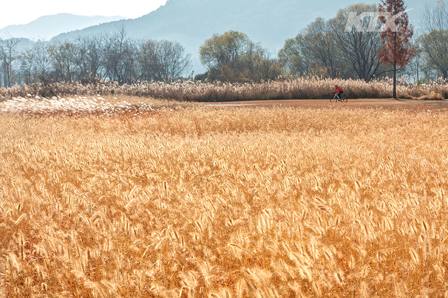 찬바람에 코끝이 시려 오는 이 계절에도 황산공원 풍경은 한없이 아늑하고 평화롭다. 은빛 억새가 너른 공원을 포근한 이불처럼 뒤덮고, 겨울 철새들의 노랫소리가 배경음악처럼 잔잔히 울려 퍼진다. 낙동강과 맞닿은 곳에는 양옆으로 메타세쿼이아가 곧게 뻗은 자전거도로가 이어진다. 부산과 밀양을 잇는 국토종주 자전거길이다. 바람을 가르는 라이더의 질주를 보고 있노라면 추위에 움츠러들었던 몸이 깨어나는 듯하다. 자전거도로 옆 산책로에는 연인이나 친구, 반려견과 나란히 걷는 시민들이 눈에 띈다. 그 일상적이고도 다정한 모습에 이끌려 산책에 나섰다. 평탄한 길을 따라 한쪽에는 황금빛 물결의 낙동강이, 다른 한쪽에는 바람에 일렁이는 억새가 마중을 나온다. 길은 걷는 자의 것이라고 했던가. 그저 걸었을 뿐인데 황산공원이 품은 겨울의 황홀한 풍경을 온전히 누리게 된다.