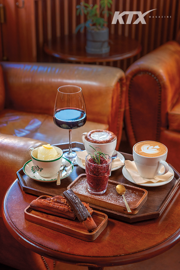 서리단길의 상점과 식당이 하나둘 문을 닫기 시작하는 늦은 밤, 홀로 아늑한 불빛을 밝히며 존재감을 드러내는 곳이 있다. 밤 12시까지 운영하는 가죽 공방 겸 카페 & 바, 패슬로우다. 유럽의 오래된 바를 연상시키는 이곳은 외관에서부터 주인의 남다른 감각이 엿보인다. 서울에서 가죽 다루는 법을 배운 대표는 고향인 양산에 내려와 가죽 공방을 열었다. 처음엔 공방만 예약제로 운영하다가 가죽에 대한 관심과 접근성을 높이기 위해 1층은 카페, 2층은 공방으로 꾸렸다. 고풍스러운 나무 인테리어가 돋보이는 카페는 가죽 소파와 원목 가구, 빈티지한 카펫으로 꾸며 아늑하면서도 세련된 분위기다. 여기에 가죽 가방과 가죽 지갑, 가죽 재킷 등을 인테리어 소품처럼 배치해 패슬로우만의 정체성을 강조했다. 덕분에 커피를 마시러 온 손님들도 자연스레 가죽 제품에 관심을 갖게 된다. 음료와 디저트 또한 맛있다는 소문을 듣고 찾아올 만큼 훌륭하다. 고소하고 부드러운 라테부터 달콤한 크림 핫초코, 상큼한 레몬 소르베 등 각기 다른 매력의 다양한 메뉴를 선보인다. 최근에는 겨울 시즌을 맞아 뱅쇼 소르베를 새롭게 출시했는데, 따뜻하게 마시던 뱅쇼를 시원한 소르베로 즐길 수 있어 찾는 이가 많다. 기다란 피낭시에에 솔트 초코나 아몬드를 입힌 디저트도 커피와 잘 어울려 인기가 많다. “물금역에는 밤 11시가 넘어서도 기차가 다녀요. 막차에 오르기 전, 마지막으로 서리단길을 즐길 수 있는 공간이 있으면 좋겠다 싶어 자정까지 운영합니다. 덕분에 마지막 데이트 코스로 사랑받고 있어요.” 늦은 시간까지 커피를 내리는 대표의 손이 분주하다.