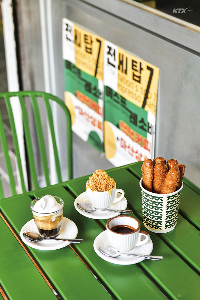 왁자한 마산 어시장에서 바다 내음 가득한 활어 골목을 걷다 보면 전혀 예상치 못한 곳과 마주하게 된다. 전통 시장 한복판에 둥지를 튼 짹짹커피가 그 주인공. 거친 질감의 콘크리트 벽면과 세련된 조명이 조화를 이루는 에스프레소 바다. 낡은 창고의 골조를 그대로 살린 인테리어는 시장의 투박한 미감과 어우러져 이곳만의 독특한 오라를 완성한다. 오픈한 지 2년이 채 되지 않았지만, 오랜 시간 시장 상인들의 고단함을 달래 주던 ‘달달한 믹스커피’ 자리를 빠르게 대신하고 있다. 짹짹커피가 처음 문을 열었을 때 적은 양에 한약처럼 진한 에스프레소를 낯설어하던 시장 사람들도 이젠 매일 아침 이곳에 들러 에스프레소를 마시는 게 루틴이 되었다. 쌉싸름한 에스프레소 위에 부드러운 크림과 브라운 치즈를 올린 ‘브라운 에스프레소’는 여행자도 꼭 한번 맛봐야 할 인기 메뉴다.