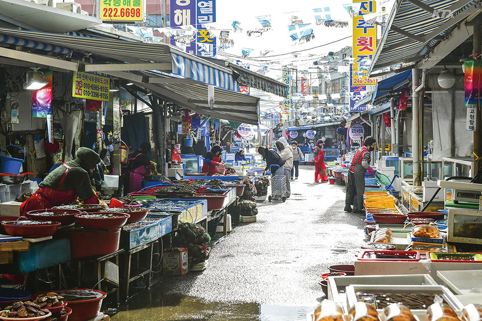 펄떡이는 활어와 산더미처럼 쌓인 건어물이 걸음을 멈추게 하는 곳, 마산 어시장이다. 생기 넘치는 마산 사람들의 삶을 가까이서 들여다보고 싶다면 이만한 곳이 없다. 시초는 조선 시대 마산포와 마산창으로 거슬러 올라간다. 대동법 실시 후 마산포에 대규모 창고인 마산창이 설치되면서 사람들이 모여들고 시장이 개설됐다. 19세기 후반 마산포에는 수산물과 곡물을 실은 수백 척의 배가 드나들었고 어시장도 성황을 이뤘다. 일제강점기인 1914년, 마산포 앞바다가 매립되면서 지금의 자리에 영구적인 수산물 유통 기반을 갖추었고, 100년 이상 마산을 넘어 경상 지역을 대표하는 시장으로 명성을 잇고 있다. 어시장의 활기찬 분위기를 제대로 느끼려면 새벽에 공판장을 방문할 것. 싱싱한 제철 수산물과 사람들의 분주한 움직임에서 어시장의 옛 명성을 엿볼 수 있다.