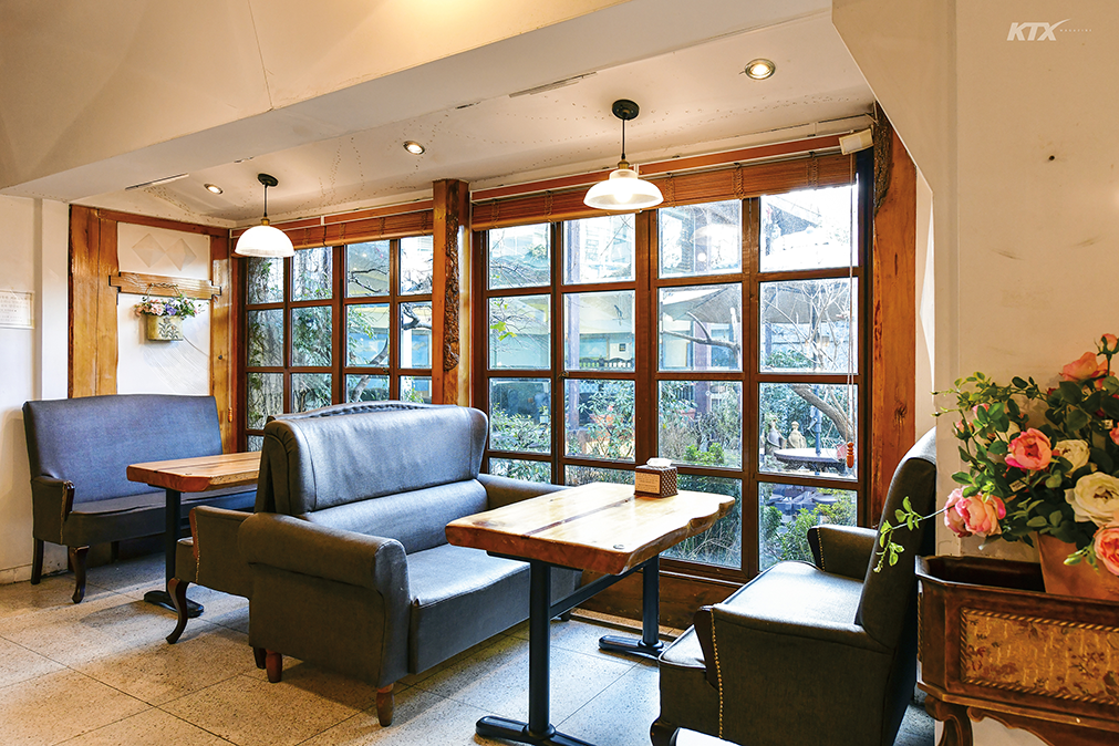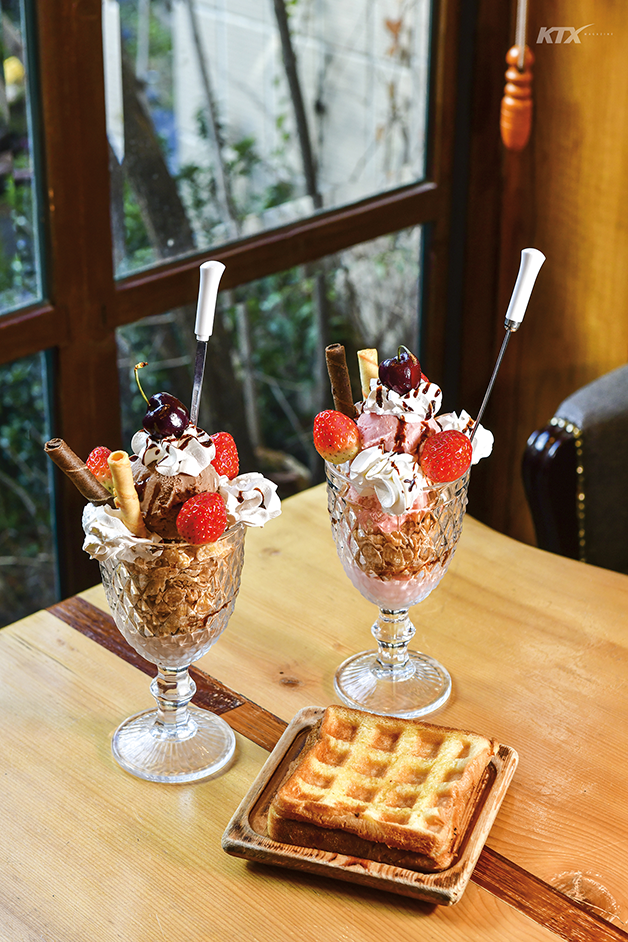 마산 창동의 좁은 골목을 걷다 보면 울창한 나무에 둘러싸인 카페, 사랑이그린세상을 만난다. 1990년대 후반부터 지금까지 한자리를 지켜 온 이곳은 마산 시민들에게 ‘사그세’라는 약칭으로 불린다. 작은 정원과 옛 다방의 아늑함을 현대적으로 해석한 독특한 분위기가 특징으로, 목조 가구와 낮은 칸막이로 구성된 좌석 배치가 레트로 감성을 자극한다. 음료를 주문하면 갓 구운 식빵과 설탕을 묻힌 와플을 서비스로 제공하는데, 놀라운 점은 이 디저트가 무제한 리필된다는 것이다. 주머니가 가벼운 학생들에게 베풀던 주인의 넉넉한 인심이 지금까지 이어져 사랑이그린세상을 상징하는 고유한 서비스 문화로 자리 잡았다. 아이스크림과 과자를 올린 옛날 파르페와 따뜻하게 데운 빵을 손으로 찢어 먹으며 담소를 나누는 시간은 이곳에서만 느낄 수 있는 훈훈한 감성이다.