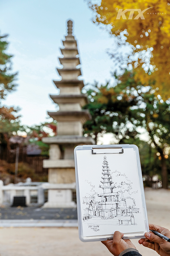 익숙한 동네와 낯선 여행지에서 2시간 내외로 그림을 완성하는 어번 스케처가 궁금해지기 시작했다. 여행자의 눈으로 스무 곳이 넘는 동네를 스케치해 에세이 <서울을 걷다>를 펴낸 정연석 작가에게 짧은 드로잉 여행을 청한 건 그래서였다. 무심히 흘러가는 하루를 소중히 간직할 방법을 알려 줄 든든한 동행자를 만나러 서울 성북동을 찾았다.