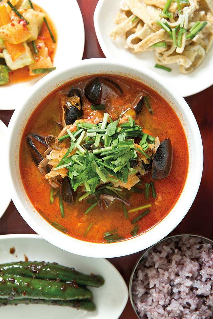 강릉에서 면 요리가 먹고 싶을 때 짬뽕과 함께 반드시 후보에 오르는 메뉴는 장칼국수다. 장칼국수의 핵심은 된장과 고추장의 조화다. 일반 칼국수가 멸치나 닭 육수를 기본으로 하는 데 반해, 장칼국수는 강된장에 고추장을 약간 섞어 국물이 칼칼하면서도 구수하다.