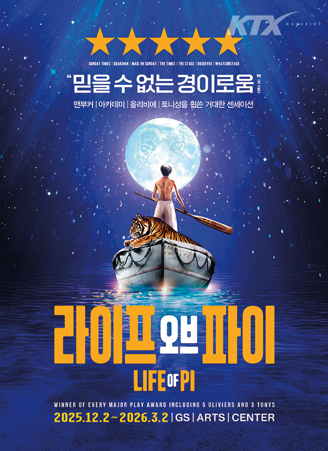 얀 마텔의 소설 <파이 이야기>를 원작으로 한 라이브 온 스테이지. 태평양 한가운데 구명보트에 남겨진 소년 파이와 벵골 호랑이 리차드 파커의 227일간의 여정을 그린다. 2021년 웨스트엔드에서 초연 후 작품성을 인정받아 전 세계 관객과 만났는데, 다른 언어로 공연하는 건 이번이 처음이다. 연극 <로미오와 줄리엣> 이후 8년 만에 복귀하는 박정민, 뮤지컬 <디어 에반 핸슨> <하데스타운> 등에서 섬세한 연기를 펼친 박강현이 파이 역을 맡는다. 동물 캐릭터의 호흡과 눈빛 등을 정교하게 표현하는 퍼펫티어도 관람 포인트다.