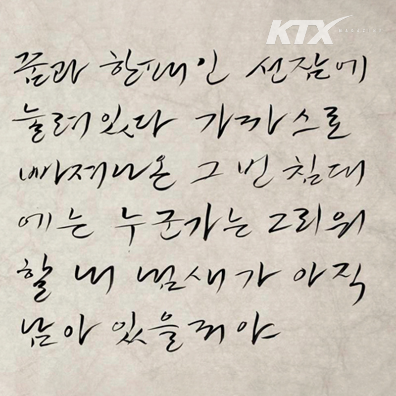 천천히 흐르는 시간에 몸을 맡긴 채 여행하는 듯한 기분이 들어요. 따뜻한 목소리와 기타 선율에 귀 기울이다 드럼과 베이스를 비롯한 다른 악기들의 소리가 더해지는 구간을 만나요. 기차가 푸른 들판을 달리는 것 같아 미소가 지어지죠.