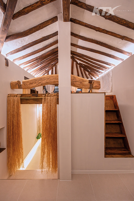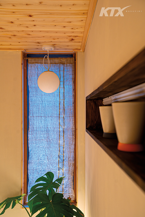 이제 금소마을은 여행자를 맞이하기 위한 채비로 분주하다. 수년 전부터 마을의 버려진 한옥을 수리해 온 임 회장은 화재 이후 스님이 사용하던 촌집을 한옥 스테이로 바꿨다. 그를 따라 스테이 예인에 들어서자 아늑한 공간이 방문객을 맞이한다. 거실을 중심으로 왼편에 자쿠지와 다락방이, 오른편에 침실이 자리한다. “방보다 낮은 위치에 있던 부엌을 욕실로 바꿔 자쿠지를 설치하고, 다락방은 아담한 차실로 꾸몄어요. 자개장과 원목 서랍장, 아치형 목재 난간은 제가 직접 구한 것이고요.” 여느 한옥 스테이에서는 보기 힘든 삼베도 눈길을 끈다. 욕실에 대마 줄기로 만든 커튼을 달고, 부엌장과 머릿장은 삼베를 바른 후 옻칠로 마무리했다. “삼베는 주로 수의를 만드는 데 썼잖아요. 망자의 몸을 오래 보존하기 위해 항균과 항습 기능이 있는 삼베옷을 입힌 거죠. 그런데 수의 문화가 점차 사라져 삼베를 어디에 써야 할지 고민이 많았습니다.” 임 회장은 항균과 항습은 물론 피부 질환 개선에도 효과가 있는 삼베를 가구나 생활용품을 만드는 데 사용한다.