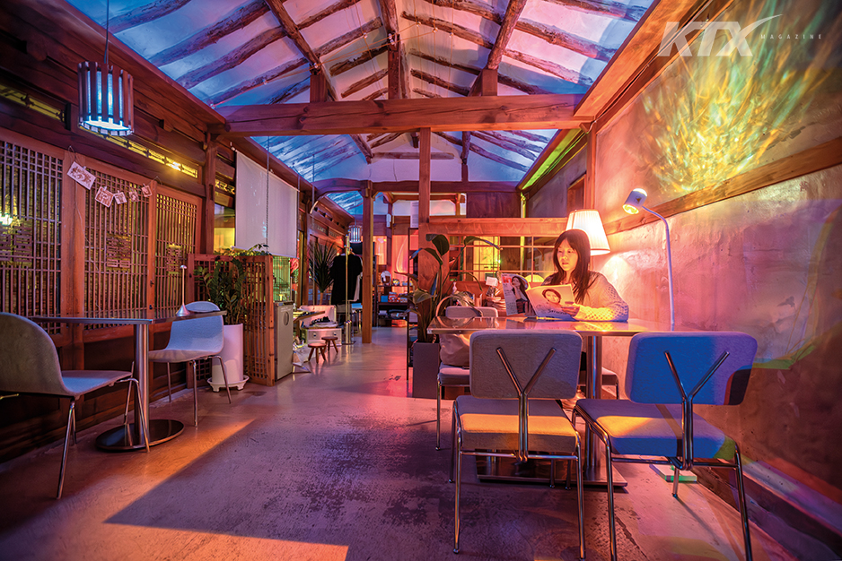 언덕 꼭대기에 다다르자 신세동이 한눈에 내려다보이는 전망대를 품은 북 카페가 모습을 드러낸다. 동네 아이들에게 ‘뚜비 아저씨’로 통하는 카페 주인은 1990년대 TV 프로그램 <꼬꼬마 텔레토비>에서 뚜비 목소리를 더빙한 성우다. 안동을 여행하던 중 이곳의 노을 진 경치에 반해 카페를 차렸다. 새로운 인생을 살아 보자는 마음으로 카페 이름도 ‘다시 여기서’라고 지었다. 향긋한 허브티 한 잔을 손에 들고 전망대에 올랐다. 분홍색으로 칠한 지붕들이 물결치고 인증 사진을 찍기 위해 모여든 청년들의 웃음소리가 울려 퍼진다.