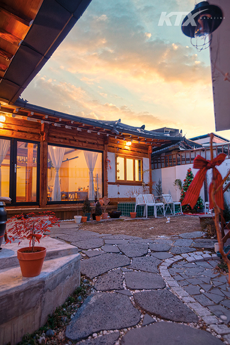 토닥토닥 한옥스테이는 머물수록 더 좋아지는 매력을 지녔다. 하루를 편안히 마무리하도록 욕실에 반신욕용 욕조를 설치하고, 여행 중 오염되는 옷을 신경 쓰지 않도록 침실에 스타일러도 구비했다. 이튿날 아침에는 주인장이 직접 조식을 만들어 배달해 준다. 메뉴는 콩나물 떡국과 직접 담근 김치. 뜨끈한 국물과 떡을 함께 떠먹으면 “시원하다”는 감탄사가 절로 나온다. 편안한 잠자리와 세심한 배려, 든든한 아침 식사까지, 마치 시골 할머니 댁에 머무는 기분이다.