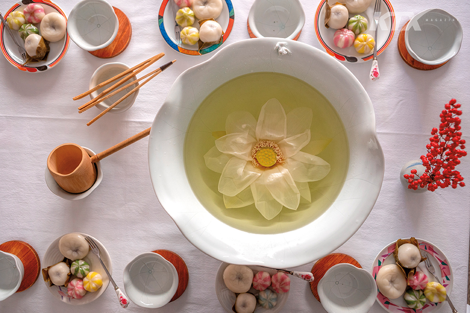 태화동 여행은 연꽃 차 체험으로 시작된다. 일제강점기 이전에 연못이었던 것에서 착안해 웰컴 티로 연꽃 차를 준비한 것이다. ‘응답하라 태화, 태트로 여행 1박 2일’에 참여하면 한옥 스테이나 공예 공방 등 원하는 곳에서 연꽃 차를 즐길 수 있다. 에디터가 서경지길을 찾은 날 연꽃 차 체험이 진행된 곳은 바느질 공방인 ‘생활공방’. 공간 한가운데 커다란 테이블을 놓고 연꽃이 담긴 그릇과 망개떡, 찻잔을 낸다. 연꽃은 한여름에 딴 봉오리를 냉동 보관해 향과 형태를 고스란히 보존한 것으로, 커다란 그릇에 담고 뜨거운 물을 부으니 안동포처럼 은은한 빛깔의 꽃잎이 서서히 몸을 편다. 공방 가득 연꽃의 향긋함이 퍼진다.