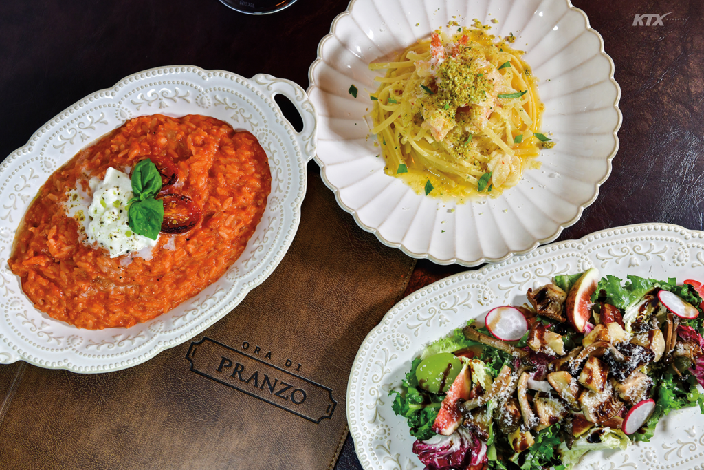 이탈리아어로 점심시간을 뜻하는 프란조는 식사 시간을 소중히 여기는 이지우 대표가 이끄는 양식집이다. 메인 메뉴 하나만 주문해도 식전 빵, 샐러드, 후식을 함께 제공해 만족도가 높다. 이곳에서 사용하는 파스타 면은 전 세계에서 사랑받는 이탈리아 브랜드 루스티켈라 제품인데, 표면이 거칠어 셰프의 정성이 들어간 수제 소스가 잘 스며든다. 프란조에서는 파스타를 비롯해 이 대표가 공들여 준비한 다양한 메뉴를 선보인다. 파슬리와 딜을 섞은 빵가루를 뿌린 알리오 올리오 링귀네, 향과 식감이 제각각인 느타리·표고·새송이 버섯을 볶아 올린 수경 재배 샐러드, 토마토의 산미와 부라타 치즈의 고소함이 조화를 이루는 포모도로 리소토까지. 애호박, 파프리카, 가지, 새우 등을 더해 식감과 색감 모두 챙긴 먹물 리소토도 인기가 많다. 각각 6명과 10명까지 수용 가능한 룸을 갖추었으며 와인 코키지도 가능해 모임 장소로 제격이다.