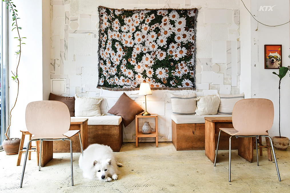 옛 불당동 문화카페거리에 자리한 통유리 구조의 개방감 좋은 카페. 대표 메뉴는 탱글탱글한 수제 커스터드푸딩을 올린 빙수로, 일일 한정 판매할 정도로 인기가 높다. 커스터드 크림은 기본으로 제공하고 추가로 사용할 소스는 두 가지 중 고르면 된다. 달콤함을 더하고 싶다면 캐러멜 소스를, 상큼한 맛이 좋다면 딸기 퓌레를 추천한다. 고소하고 달콤한 팥과 부드러운 우유가 어우러진 팥라테도 매력적이다. 팥라테를 얼려 곱게 간 것에 국내산 팥소를 얹은 팥빙수 또한 이곳의 대표 메뉴. 호두과자의 도시 천안에서 팥을 다르게 맛보고 싶은 사람에게 괜찮은 선택이다. 빙수는 한때 여름철 별미였지만 베이스와 토핑의 종류가 늘면서 이제는 사계절 즐기는 디저트가 됐다. 기분을 끌어올릴 달콤한 맛이 필요한 날엔 투카인즈오브커피를 찾아가자. 카페의 마스코트인 대형견 봉자도 느긋한 표정으로 손님을 반겨 준다.