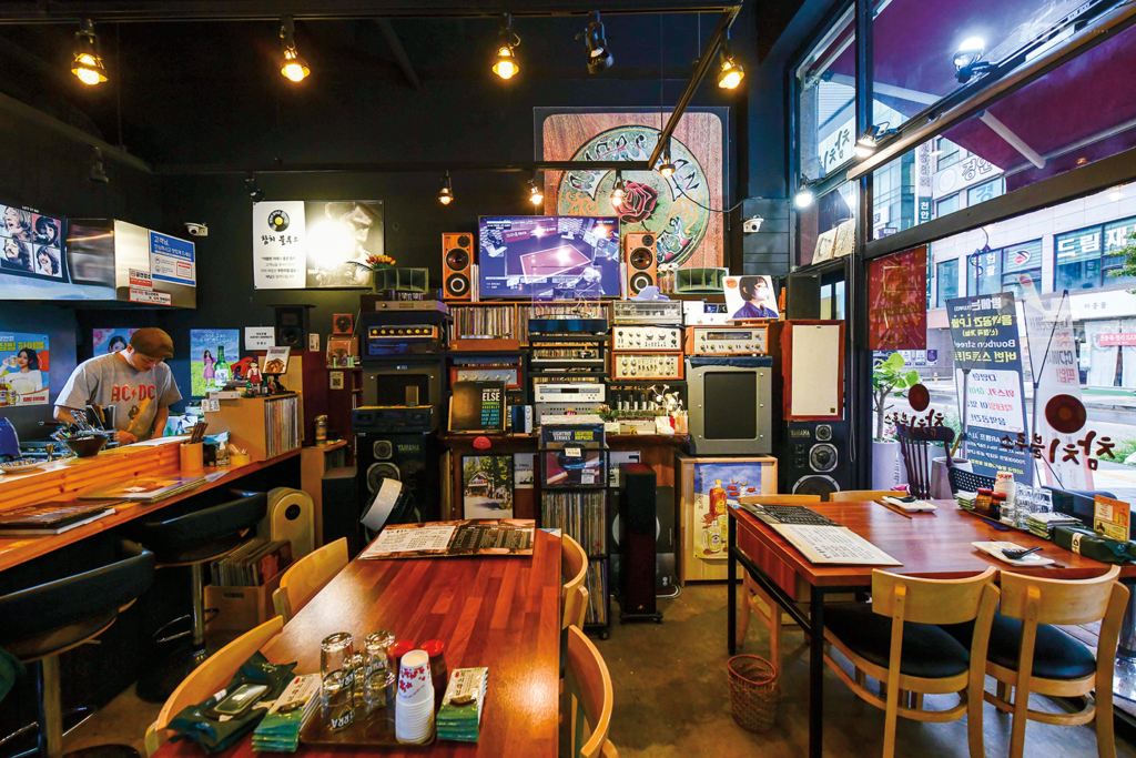 음악을 사랑하는 한 사람의 손길로 독특한 식당이 탄생했다. 안으로 들어서면 안병복 대표가 15년간 수집한 7000여 장의 국내외 희귀 LP 음반이 한쪽에 꽂혀 있고, 테이블마다 참치 회가 놓인 이색적인 풍경이 펼쳐진다. 참치 회와 음악 모두 천천히 음미해야 진가를 발휘한다고 생각해 이렇게 공간을 꾸몄다. 혼자 오는 손님을 배려해 ‘블루스’의 첫 글자를 딴 1인 메뉴도 마련했다. 블 코스는 참다랑어, 눈다랑어, 황새치와 특수 부위로 구성했고, 루 코스는 참다랑어가 참다랑어 뱃살로 업그레이드되며, 스 코스에는 참다랑어 배꼽살이 추가된다. 모든 코스에는 담백한 죽, 감칠맛 도는 소라 숙회 무침, 바삭한 튀김 등이 포함돼 배를 든든히 채운다. 여기에 피트 위스키를 곁들여도 괜찮다. 안 대표는 최상의 음질을 위해 발매 당시의 오리지널 초반만 모았고, 계절이 바뀔 때마다 어울리는 음악을 튼다. 캐넌볼 애덜리의 ‘Autumn Leaves’, 톰 웨이츠의 ‘Time’, 유열의 ‘가을비’, 이정선의 ‘외로운 사람들’ 등 가을 정취 물씬한 음악을 이 계절에 찾아온 손님들에게 꼭 들려준다.