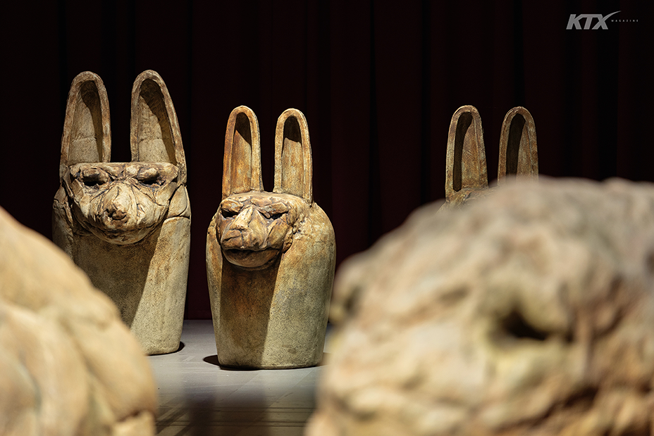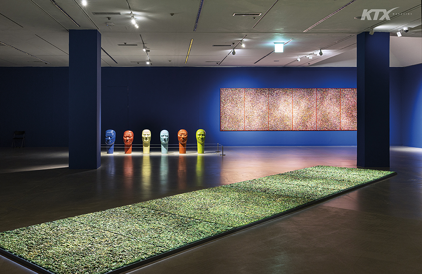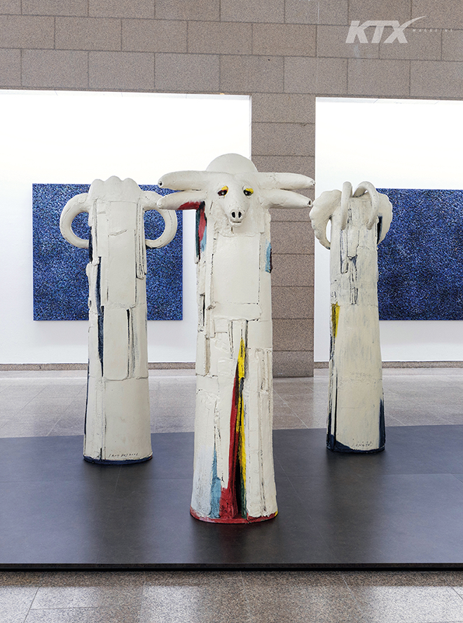 오대양을 항해하듯 다섯 개의 방을 지나 중앙 홀에 이르면 대형 설치 작품 ‘아프리카의 꿈-토템’이 마지막 인사를 건넨다. 국립현대미술관의 높은 층고와 조형적인 계단, 육중한 기둥을 배경으로 당당하게 도열한 백색 동물 무리에 압도되어 사색하며 머무르게 되는데, 관람객의 심연을 꿰뚫어 보는 듯 신비롭고 매서운 눈빛이 압권이다.