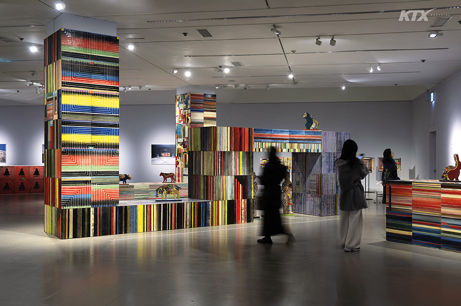 다음 여정은 건축의 세계였다. 2000년대에 이르러 작가는 ‘구운 그림(fired painting)’ 타일로 도자와 건축의 결합을 시도했다. 50×50센티미터 크기의 도자 타일을 색색으로 구워 내 반영구적 건축 외피로서 도자의 응용 가능성을 실험한 것인데, 이를 위해 벽면의 표피를 감싸면서도 분리와 재설치가 가능한 탈착 체계를 직접 설계했다. 지금으로 치면 참으로 ‘인스타그래머블’했을, 센트럴시티 터미널의 ‘밀레니엄 타이드’와 클레이아크김해미술관, 금호아시아나 사옥(현 콘코디언 빌딩), 서초 삼성타운 등의 대형 외벽 프로젝트가 그렇게 탄생했다.
