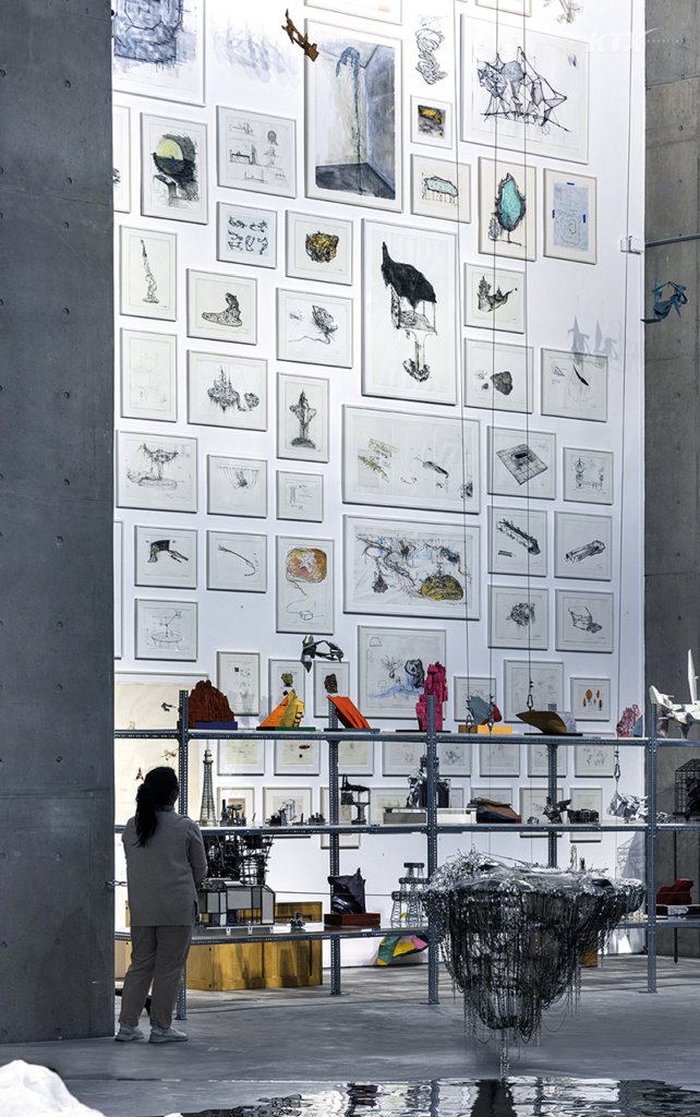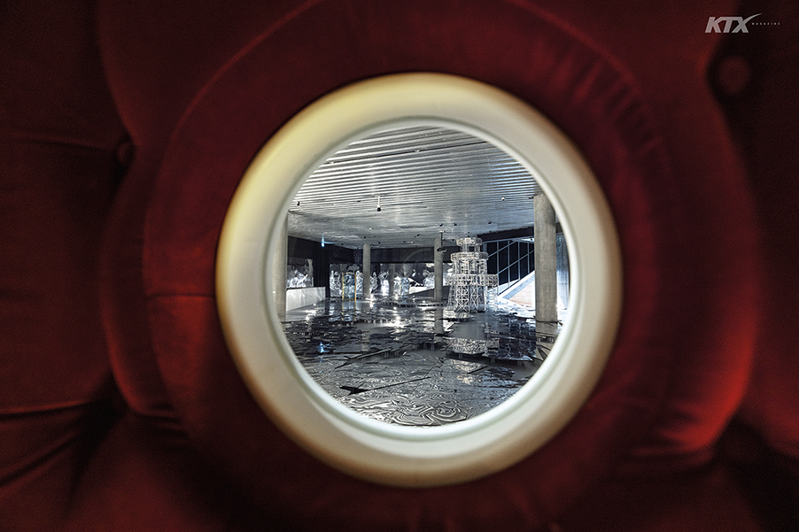 한쪽 벽면 전체를 할애해 하나의 전시가 탄생하는 과정을 옮겨 놓은 ‘스튜디오 섹션’은 오랫동안 작가의 전시를 기다렸던 이들에게 선물과도 같다. 작가 스스로 ‘구상에서 실현까지의 설계도’라고 설명하듯 한계 없이 아이디어를 펼쳐 보이는 드로잉과 그 상상을 3차원으로 펼쳐 놓은 모형까지, 수직으로 펼쳐진 생각의 아카이브! 엔딩 크레디트가 올라갈 때까지 이불의 세계는 쉴 틈을 주지 않는다. 한국적 위장 공간이자 작가의 어린 시절 피난처가 되어 주었던 ‘벙커’, 직접 거울 미로를 빠져나오는 동안 호기심과 두려움이 극대화되는 ‘비아 네가티바’ 등을 지나 전시장을 완전히 벗어나기까지는 꽤 오랜 시간이 걸린다. 그렇게 다시 반짝이는 비행선 아래로 걸어 나오면 두세 시간이 훌쩍 지나가 있다. 그러나 결코 아깝지 않은 시간이다. 넋을 잃고 바라보다가 마음껏 사진도 찍고, 미술관에서 추억의 팝송을 열창하는 경험도 하며 이불의 세계를 누비는 동안 현란하고도 모호하며, 아름답지만 공포스러운 전시장 밖의 현실을 감각하게 될 테니까.