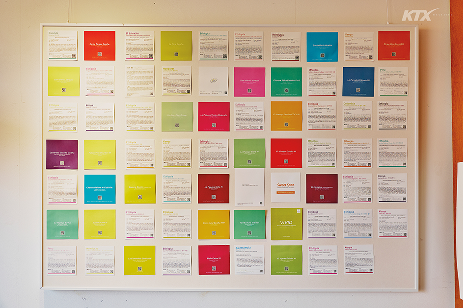 2 매장 벽면을 채운 싱글 오리진에 대한 기록물.