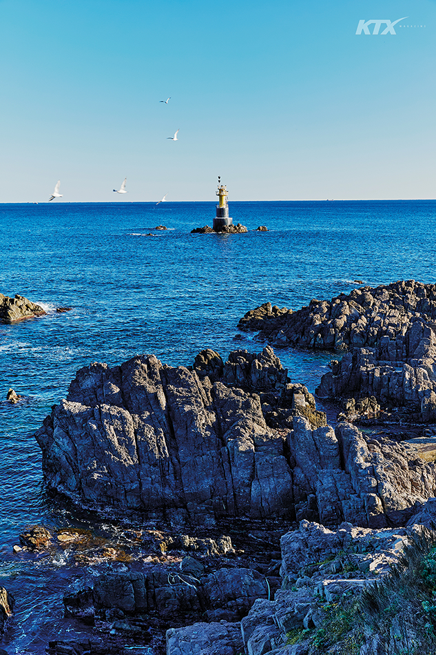 경주를 거대한 고분과 유적지가 가득한 내륙 도시로만 기억한다면 반쪽만 아는 것이다. 토함산 터널을 지나 동쪽 끝으로 달리면 감포 바다가 펼쳐지고, 그 시작점에 ‘소나무 숲 끝자락’이라는 뜻을 지닌 송대말(松臺末)등대가 자리한다. 이름 그대로 200~300년 된 해송(海松)이 기암괴석 위로 빽빽하게 숲을 이루고, 그 끝에 하얀 등대가 아득하게 펼쳐진 망망대해를 응시하고 있다. 송대말등대는 감은사지 3층 석탑을 형상화한 것이 특징이다. 바다 위에서도 신라의 우아한 미감을 엿볼 수 있다. 해안 도로를 따라 남쪽으로 내려가면 세계 유일의 수중 능인 문무대왕릉이 모습을 드러낸다. 삼국 통일의 대업을 완수한 문무왕은 “죽어서도 용이 되어 왜구로부터 나라를 지키겠다”라는 유언을 남기고 차가운 바닷속에 잠들기를 자처했다. 궂은 날씨에 해무가 피어오르면 파도가 부서지며 생성되는 하얀 포말이 신비로움을 자아낸다. 답답한 속을 뚫어 주는 송대말등대의 바람과 묵직한 울림을 주는 문무대왕릉의 파도, 이 둘은 경주의 바다가 전하는 서사시의 절정이다.