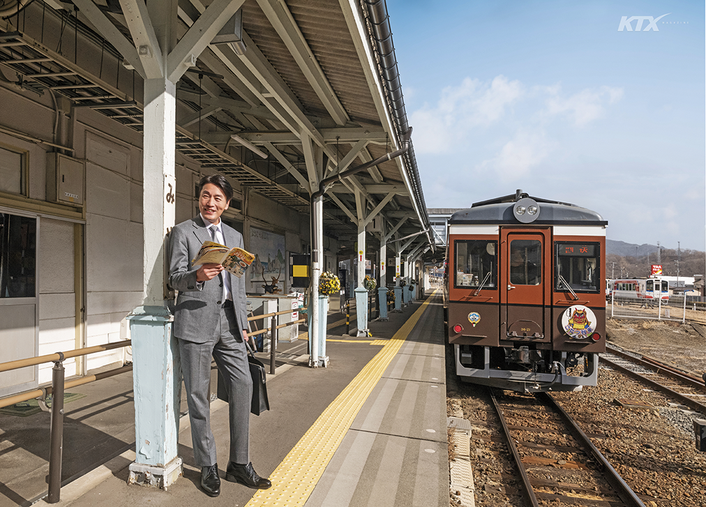 핫쇼쿠 센터에서 기분 좋게 배를 채운 후 고타쓰 열차를 타러 이와테현의 구지역으로 향했다. 고타쓰는 전기 히터를 부착한 탁자에 이불을 덮은 일본의 전통 방한 기구. 12월 말부터 3월 말까지 이와테현 북부 구지역에서 미야코역을 잇는 산리쿠 철도의 객차 한 칸을 고타쓰 열차로 운영한다. 열차를 타기 전 반드시 준비해야 할 것은 이와테현의 맛이 한 그릇에 담긴 에키벤. 고소한 성게알과 졸깃한 전복, 담백한 연어 구이에 입안에서 통통 터지는 연어알 등을 밥 위에 가득 올린 에키벤을 사전 예약해 구지역에서 구매한다. 좀 더 특별한 에키벤을 원한다면 사전 예약으로 나무 배에 담긴 종합 선물 세트 같은 에키벤을 맛볼 수 있다. 비린 맛 없이 입에 착 붙는 고등어 회와 감칠맛 넘치는 오징어 젓갈, 고소한 닭튀김과 졸깃한 가리비 꼬치, 그리고 성게알 주먹밥까지, 아름답고 깨끗한 자연이 선물해 준 맛있고 싱싱한 이와테현산 식재료로 만든 10여 종의 메뉴가 기대감을 더욱 증폭시킨다. 고타쓰 열차 탑승은 마츠다 부장도 권오준 셰프도 처음 접하는 경험. 흔치 않은 기회를 알차게 즐기기 위해 에키벤을 종류별로 모두 준비했다.