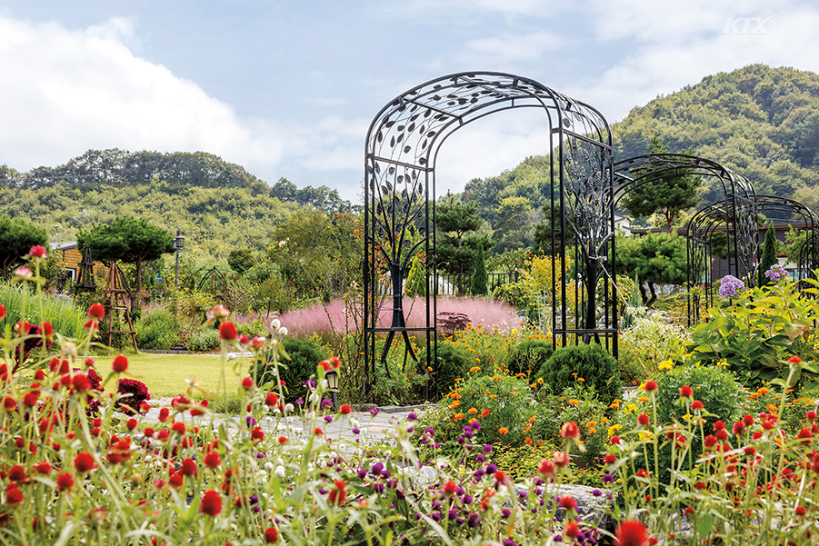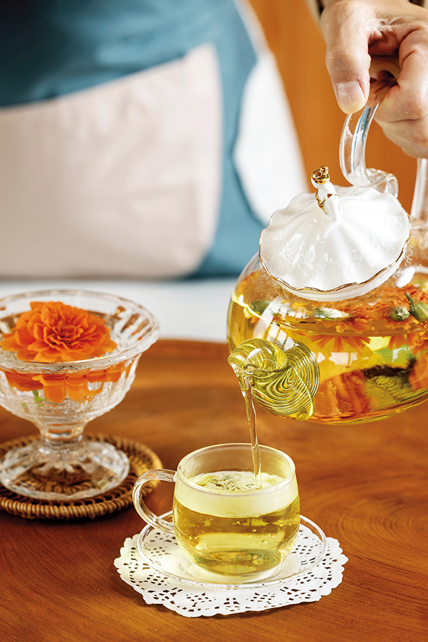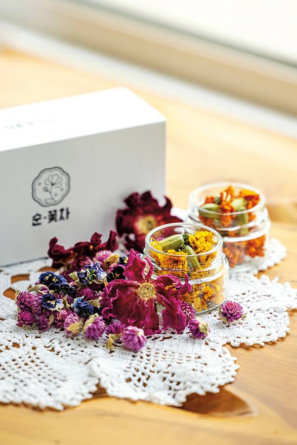 대학 병원 간호사를 그만두고 자녀들도 성인이 되고 나니 문현순 대표에게는 새로운 길이 필요했다. 자연에서 해답을 찾기로 결심하고 순창으로 귀촌한 문현순·장용일 부부. 원래 정원을 가꿔 자급자족하는 삶을 계획했다가 농업기술센터에서 여러 교육 프로그램을 이수하며 치유 정원 운영을 준비했다. 뜨레마을협동조합 법인을 설립하고, 장 대표는 치유농업사 2급 자격증을 취득하며 사람들을 꽃의 세계로 안내할 채비를 마쳤다. 사계절 모습을 달리하는 이곳의 핵심 자원은 단연 꽃. 치유 정원, 실내 교육장, 체험 카페 및 휴식 공간, 원예 체험장, 열대식물원 모두 꽃을 중심으로 구성한 공간이다. 초화류 200여 종, 목본류 100여 종을 식재한 정원은 봄에는 튤립, 알리움, 백합, 산수유 등이 자태를 뽐내고, 가을에는 핑크뮬리를 비롯해 천일홍, 국화, 아스타, 백묘국 등이 주인공 자리를 건네받는다. 수확한 꽃을 다듬고 덖어 꽃차를 마시는 시간은 참여자들이 작은 성취감을 얻고 소소한 행복을 느끼게 한다. 꽃 비빔밥, 꽃 샐러드, 허브 음료를 만드는 푸드 테라피나 계절별 원예 활동 또한 심신이 지친 사람들에게 활기를 불어넣고 자기 효능감을 높인다. ‘꽃님과 첫 만남’ ‘희망 키우기’ ‘수확의 즐거움’ ‘꽃이 다시 피네’ 등 치유 정원 프로그램 이름도 다정하다. 꽃은 한풀 꺾였더라도 햇볕을 쬐어 주고 물을 충분히 주면 꼭 다시 핀다는 부부의 위로와 응원이 담겨 있다.