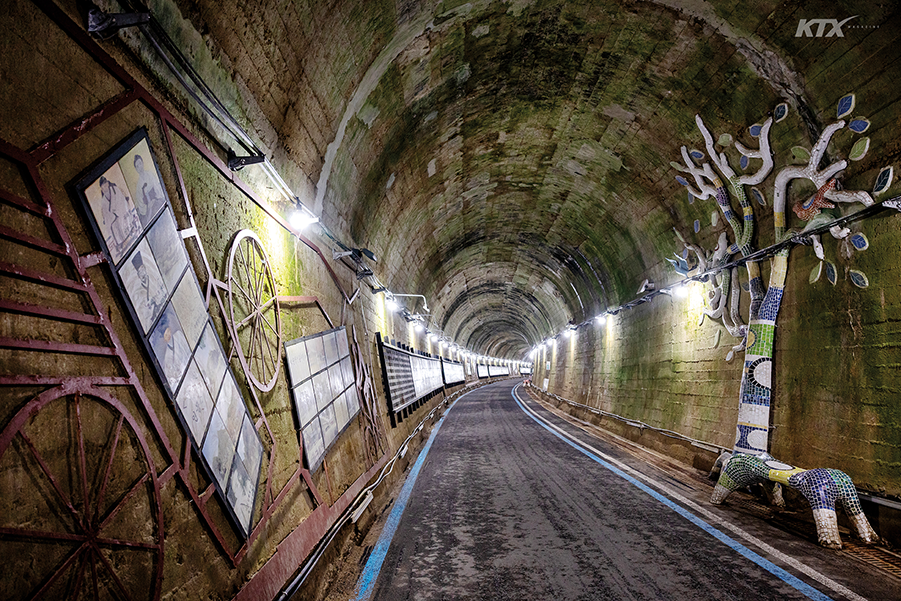 일제강점기에 일본군은 쌀을 대량으로 수탈하고자 전국 곳곳에 철로를 설치하고 항구도시를 점령했다. 순창의 향가마을에도 당시 일제가 만행을 저질렀는데 향가터널과 향가다리가 바로 그 흔적이다. 일제는 전북 남원과 광주를 잇는 철로를 놓기 위해 순창 주민들을 강제 동원해 옥출산을 뚫어 384미터 길이의 터널을 만들었고, 여덟 개의 교각을 세웠다. 광복 후 철로 건설은 중단되었고, 마을을 잇는 통행로로 이용하던 향가터널은 2013년 섬진강 자전거 길 조성 사업을 통해 현재의 모습으로 바뀌었다. 터널 입구에 서 있는 험상궂은 표정의 일본 순사 조형물과 터널 위 자전거 바퀴 모형이 대조를 이루며 80년 세월의 간극을 보여 준다. 터널 끝자락에서 만나는 새 모형은 ‘새들의 향연’이란 작품으로, 애환이 서린 향가터널에 새들이 하나둘 모여 희망을 안고 여정을 시작하는 모습을 담았다. 발걸음 소리만 들리는 고요한 터널을 지나면 나타나는 향가다리는 전북 임실부터 전남 광양까지 이어지는 섬진강 자전거 길의 일부다. 시원한 바람을 온몸으로 맞고, 섬진강 물소리를 배경음 삼아 떠나는 자전거 여정은 이맘때 누릴 수 있는 행복이다. 향가다리 일대에는 예부터 시인 묵객이 아름다운 경치와 함께 뱃놀이를 즐기던 곳으로 알려진 향가유원지가 자리하니, 잠시 숨을 돌리고 가을 정취에 빠져도 좋다.