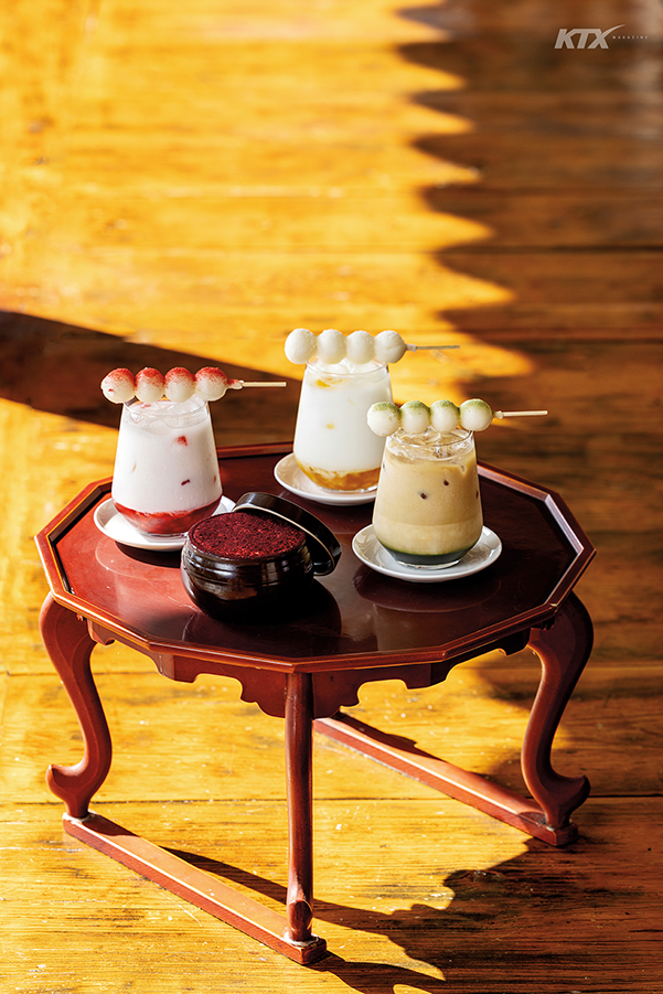 고택을 리모델링한 건물, 마루 위에 놓인 상, 차곡차곡 쌓인 방석, 곳곳에 자리한 선풍기 등 여러 요소가 시골집에 내려온 듯 아늑하고 정겨운 분위기를 선사한다. 상 위의 작은 항아리에 든 붉은빛을 띠는 디저트 이름은 항아리 고추장 티라미수. 조철 대표는 순창의 특색을 살린 디저트를 만들고자 인기 메뉴인 티라미수에 카카오 가루 대신 비트 가루를 뿌려 고추장을 표현했다. 장류 특화 지역이니만큼 밤 티라미수도 항아리에 담아 시각적 즐거움을 더한다. 순창에서 생산한 팥과 국내산 쌀로 만든 딸기 모찌를 비롯해 딸기 파르페, 딸기 크루아상, 딸기 우유 등을 함께 내는 딸기 오마카세 한 상은 마니아층에게 반응이 좋고, 당고를 얹은 라테는 이 카페의 시그너처 메뉴로 말차·망고·딸기·오곡 등 선택지가 많다. 이 외에도 관광 명소인 채계산 출렁다리를 형상화한 빙수를 선보이는 등 지역색을 더한 디저트 개발을 이어 가고 있다. 별채 건물에는 좌식 대신 테이블을 마련해 취향에 맞게 공간을 이용하도록 했다. ‘당신의 전성기는 지금 이 순간’이라는 뜻을 담아 카페명을 화양연화라고 지었다는 조 대표의 말처럼, 카페에 머무르는 동안만이라도 지금 이 순간에 집중하는 건 어떨까.