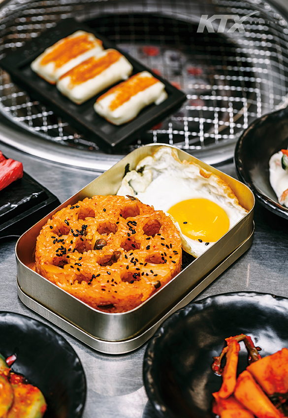 태백의 한우 연탄구이는 탄광 도시의 역사와 궤를 같이한다. 태백이 탄광 도시로 명성을 날리던 시절, 광부들은 목에 낀 탄가루를 씻어 내려고 연탄불에 고기를 구워 먹으며 하루의 고단함을 날리곤 했다. 태백에 연탄구이 식당이 많은 이유다. 그중 문곡역1962는 옛 기차역 자리에서 한우 연탄구이를 파는 이색 식당이다. 함태탄광과 가까운 문곡역은 1962년 개통 이래 무연탄을 실어 나르는 열차가 정차하던 역이었다. 인근 상장동 사택촌에 사는 광부와 태백산 등산객도 즐겨 찾았다. 석탄 산업이 쇠락하면서 사람들의 발길이 뚝 끊겼고 문곡역은 2009년에 폐역이 됐다. 더 이상 기차가 서지 않는 역에 숨결을 불어넣은 이는 이지영 문곡역1962 대표다. 그는 문곡역을 태백의 역사와 미식을 전하는 플랫폼으로 변모시켰다. ‘타는 곳’ 팻말이 붙어 있는 대합실은 식사 전후 차를 마시는 공간으로, 문곡역의 사무실은 한우 연탄구이를 파는 식당으로 꾸몄다. 한우 갈빗살이나 안창살을 주문하면 한자로 태백산 글자가 새겨진 송이버섯을 함께 내는데 태백산 정상의 비석을 똑 닮았다. 질 좋은 태백 한우를 숯불보다 화력이 센 연탄불에 구우면 육즙이 샐 틈 없이 꽉 차 극강의 고소한 맛이 난다. 문곡역1962의 또 다른 시그너처 메뉴는 김치볶음밥. 네모난 도시락에 담은 연탄 모양 김치볶음밥이 눈을 즐겁게 한다. 이 겨울, 연탄불 곁에 둘러앉아 오손도손 온기를 나눠 보면 어떨까.