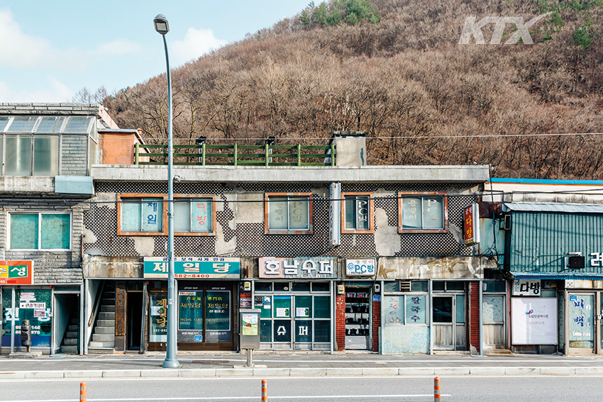1970년대 석탄 산업 호황기에 철암은 광부들에게 막장으로 향하는 위험한 일터이자 고임금이 보장된 기회의 땅이었다. 개도 1만 원짜리 지폐를 물고 다닌다는 이야기가 회자될 정도였다. 현재 광부들은 떠났지만 호남수퍼, 봉화식당, 한양다방 등이 빛바랜 간판을 내걸고 철암을 지키고 있다. 철 지난 노포 같지만 석탄 산업과 광부의 생활상을 보여 주는 철암탄광역사촌이다. 호남수퍼 안에는 그 시절 선술집과 마을 골목, 가정집 풍경이 펼쳐진다. 경북식당에서는 미니 연탄 만들기 체험을 할 수 있다. 석탄 가루를 연탄 틀에 넣고 망치로 톡톡 두드리면 구멍 뚫린 연탄이 완성된다. 신설교 위를 걸어 철암천변을 건너면 아이를 등에 업고 손을 흔드는 아내와 가족을 향해 인사를 건네는 광부의 뒷모습이 포착된다. 철암천변을 따라 늘어선 건물들은 모두 까치발 건물이다. 광부는 늘어나는데 집은 부족해 하천 바닥에 까치발이라 부르는 지지대를 설치하고 주거 공간을 확장해 지층에 사람이 살았다. 철암천변을 따라 언덕을 오르면 삼방동 전망대에 닿는다. 이곳에 서면 광부 아버지와 아들 조형물 너머로 철암역과 연결된 선탄 시설까지 한눈에 들어온다. 선탄 시설은 장성광업소에서 지하 터널로 보낸 원탄을 가공해 화물차에 싣던 곳이다.